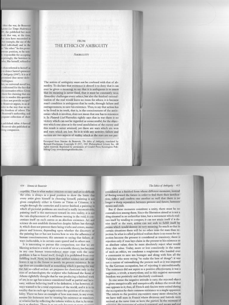 Beauvoir The Ethics Of Ambiguity Part 2 Part 1 Guide The Ethics