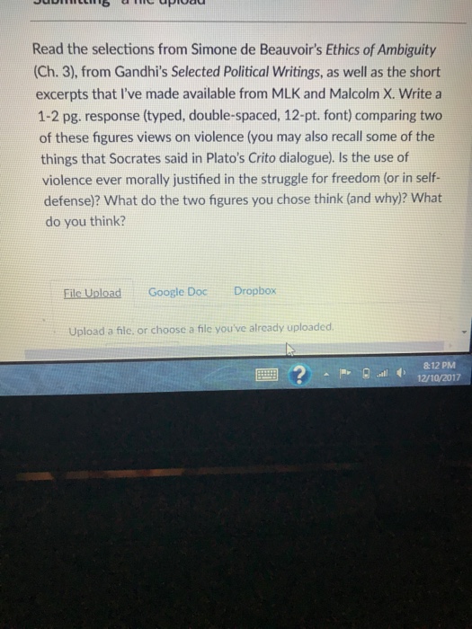 Reading Response Guide Beauvoir The Ethics Of Ambiguity Ch 1 Pp