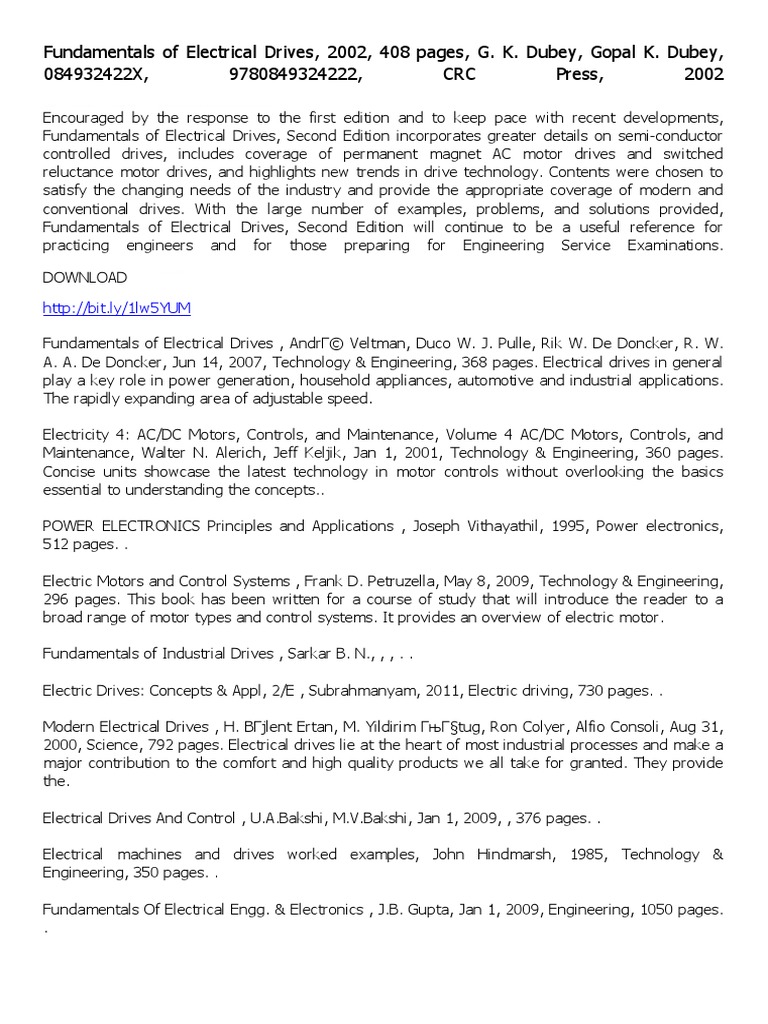 Pdf Book Fundamentals Of Electrical Drives Download Ebook