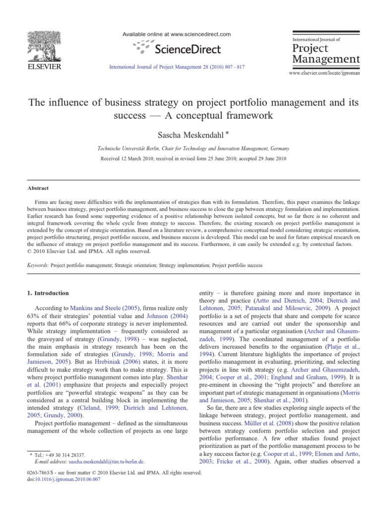 The Influence Of Business Strategy On Project Portfolio Management